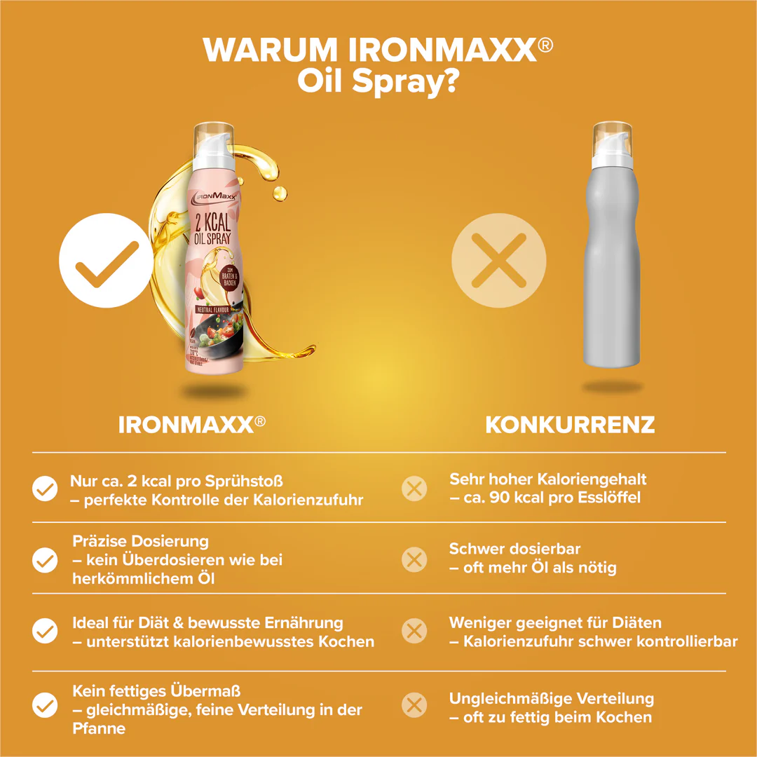 2 kcal Olajspray (200ml) – IronMaxx® – Csökkentett kalóriatartalmú olajspray alacsony zsírtartalmú főzéshez