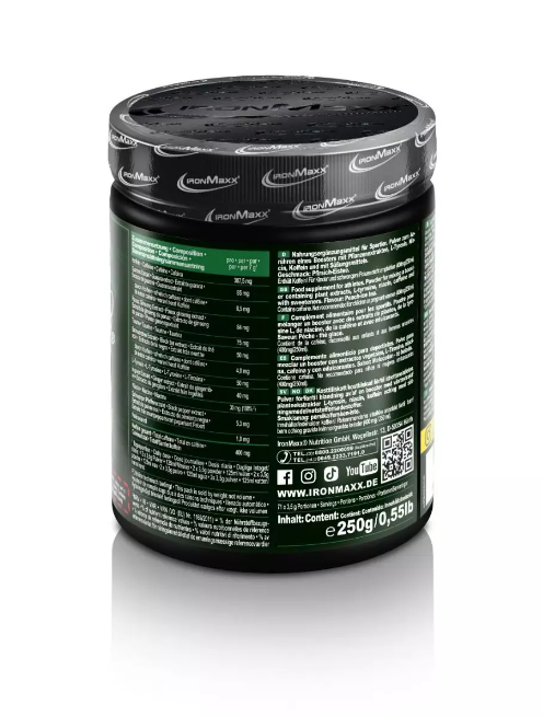 Maximális „bedurranás”, fokozott kitartás és koncentráció, amit a Berserker Zero Powder biztosít számodra az edzések során. Nagy adag koffein (200 mg), valamint stimuláló hatású növényi kivonatok guaranából, fekete borsból, ginzengből és gyömbérből biztosítja a termék hatékonyságát. A Berserker ZERO Powder 250g – IronMaxx® ezenfelül taurint és l-tirozint is tartalmaz. A szervezetben megtalálható taurin 75%-a az izomsejtekben fordul elő. Az l-tirozin pedig egy proteinogén aminosav, mely fontos szerepet játszik a fehérjék bioszintézisében, valamint növeli a pszichikai és fizikai teljesítőképességet, illetve kitartást.