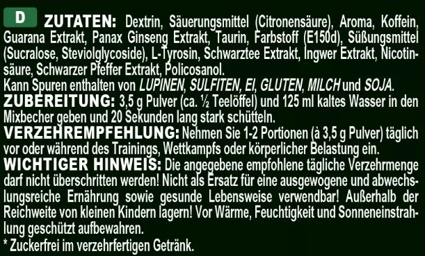 – Többek között koffeinnel, guaranával, taurinnal és l-tirozinnal dúsítva!