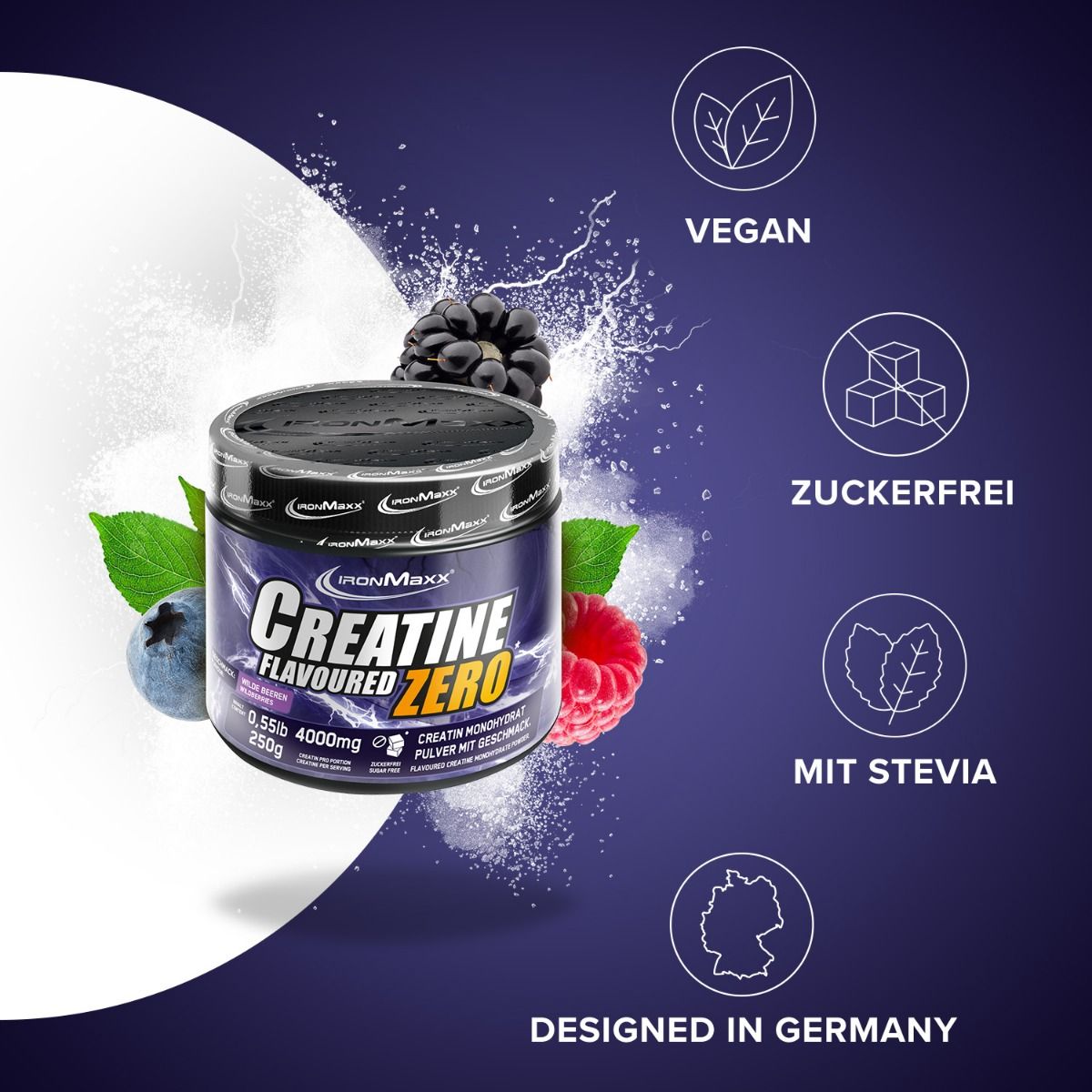 A Creatine Flavoured ZERO (250g) IronMaxx® ízesítése: Erdei gyümölcs, Citromos jeges tea