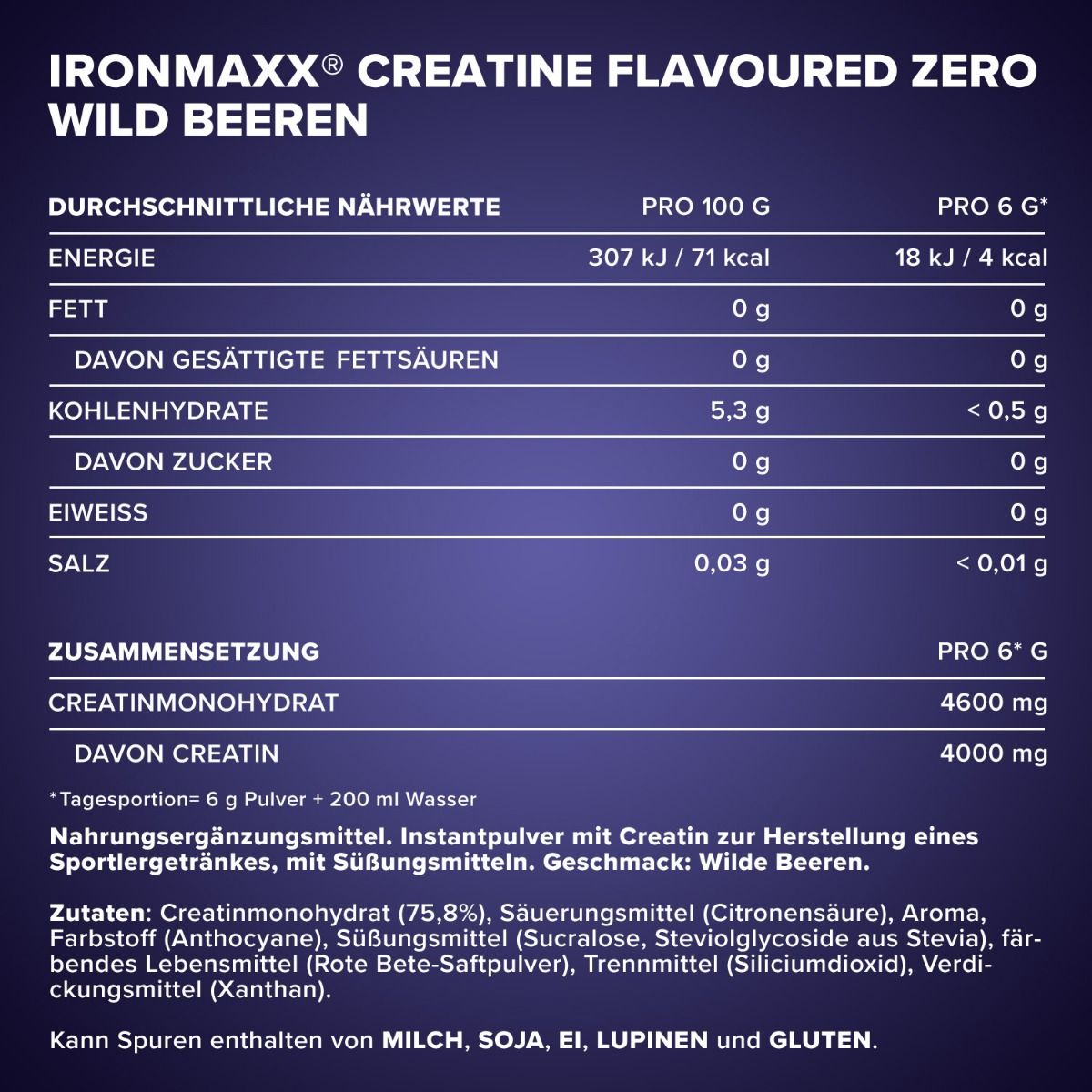 A Creatine Flavoured ZERO (250g) IronMaxx® napi adagja: 1-3 * 6g