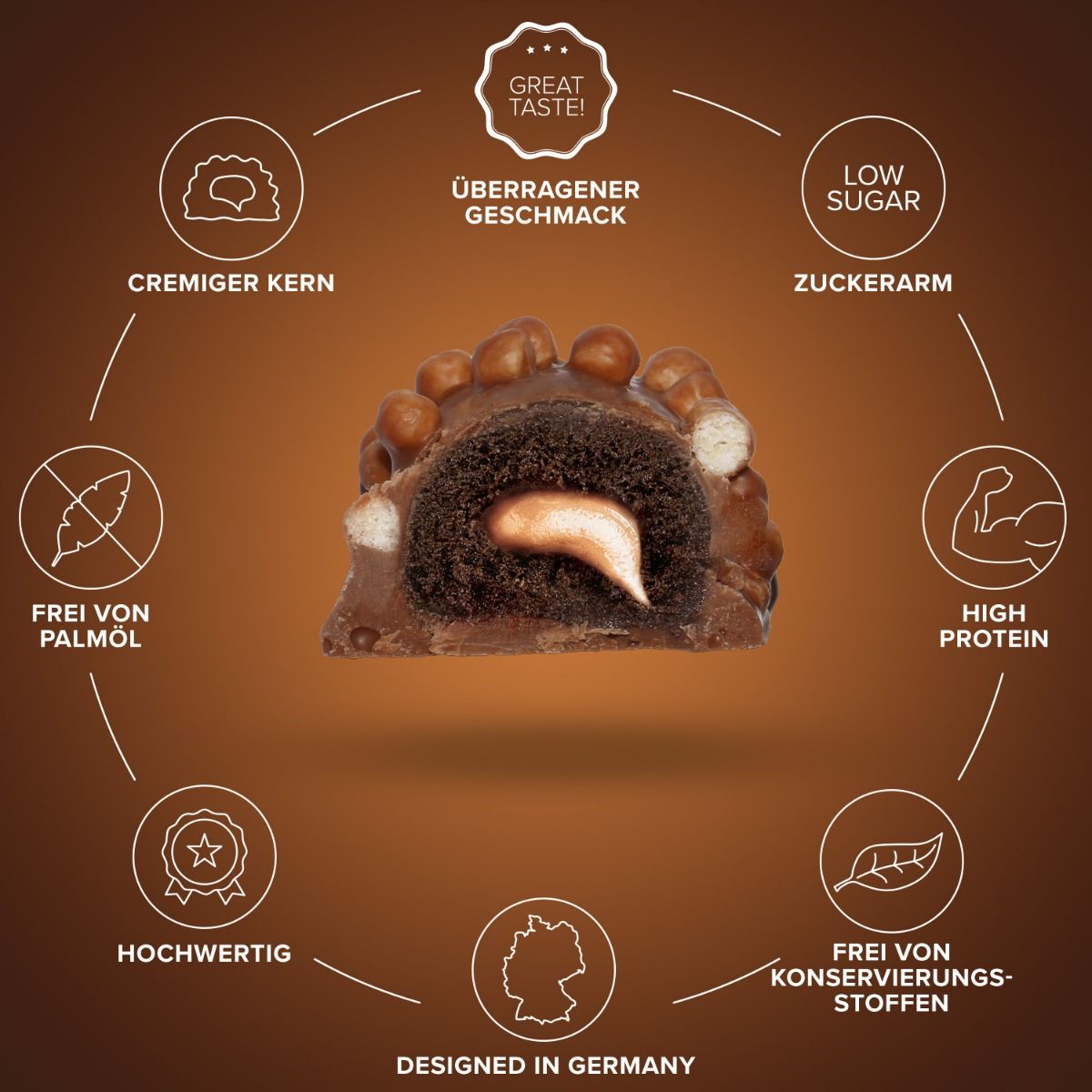 Az IronMaxx® lávaszelet meggyőz belső és külső értékeivel. Ennél a finom szeletnél nehéz elhinni, hogy a szelet tökéletes tápértéket és összetevőket is biztosít: Az alacsony cukortartalom miatt a szelet habozás nélkül fogyasztható bármilyen diéta mellett. Ezenkívül a szelet kiváló minőségű fehérjét tartalmaz , ami nagyon fontos a szervezet számára. A szelet magas fehérjetartalmú – akár elképesztő 37%-os fehérjetartalommal. A fehérjék létfontosságúak a szervezet számára, és hozzájárulnak az izomtömeg fenntartásához és növeléséhez. A bár nem csak sportolók számára alkalmas, hanem mindenki számára, aki egy kis, ízletes nassolnivalóra vágyik az étkezések között, és nem akar lemondani a finom ízekről és a legmagasabb tápértékekről. Környezetünk érdekében teljes mértékben tartózkodunk a pálmaolaj adagolásától, a színezékeknek és tartósítószereknek pedig nincs helye a Lava® Bar 40g IronMaxx®-jában.