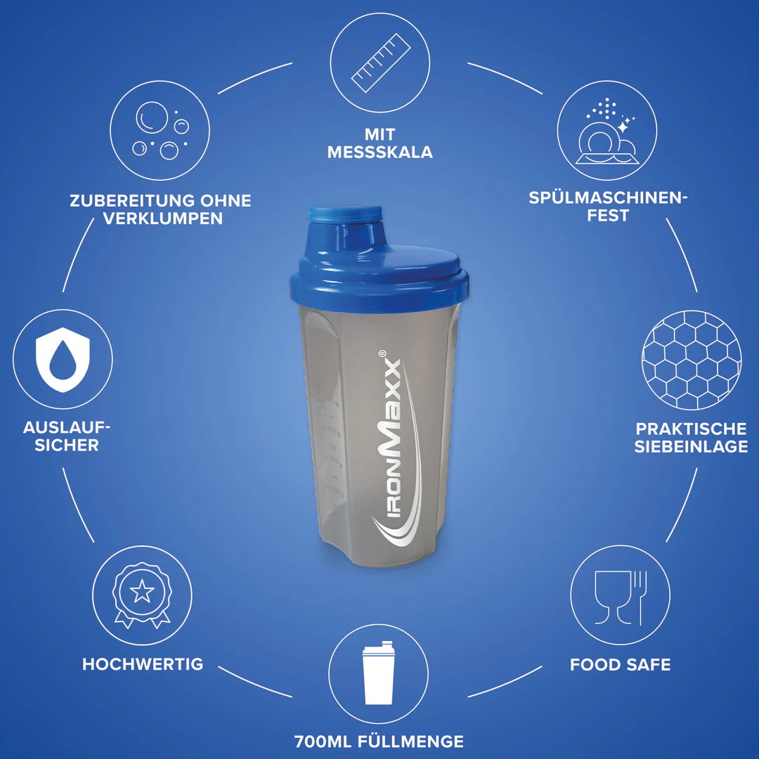 • Klasszikus és funkcionális: A Shaker 700ml – IronMaxx® mindent kínál, amire egy kiváló minőségű fehérjeshakernek szüksége van – egyszerű, praktikus és hatékony.